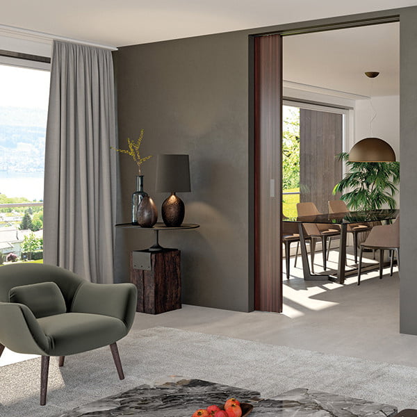 Sliding solutions in buildings ensure that areas can be spaciously and flexibly designed and furnished. People want as much free space and openness as possible – in both the private and the corporate sphere. New room concepts are made possible thanks to sliding solutions. Layouts in existing buildings or apartments can be significantly optimized by using sliding solutions. This can significantly increase the value of existing properties.