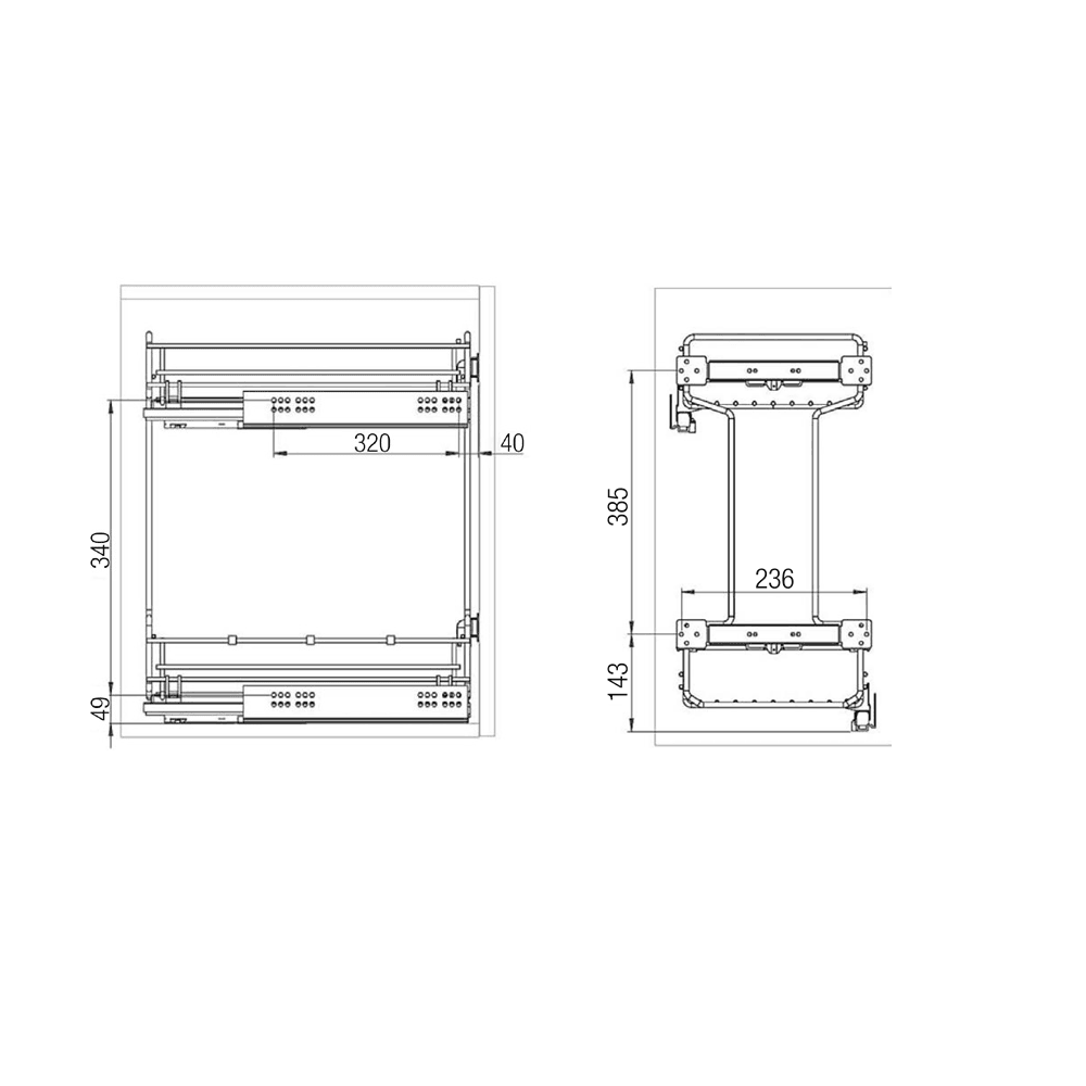 - The dimensions of pull-out with slides for 400mm cabinet width: 360x450x585 mm (width×depth×height).