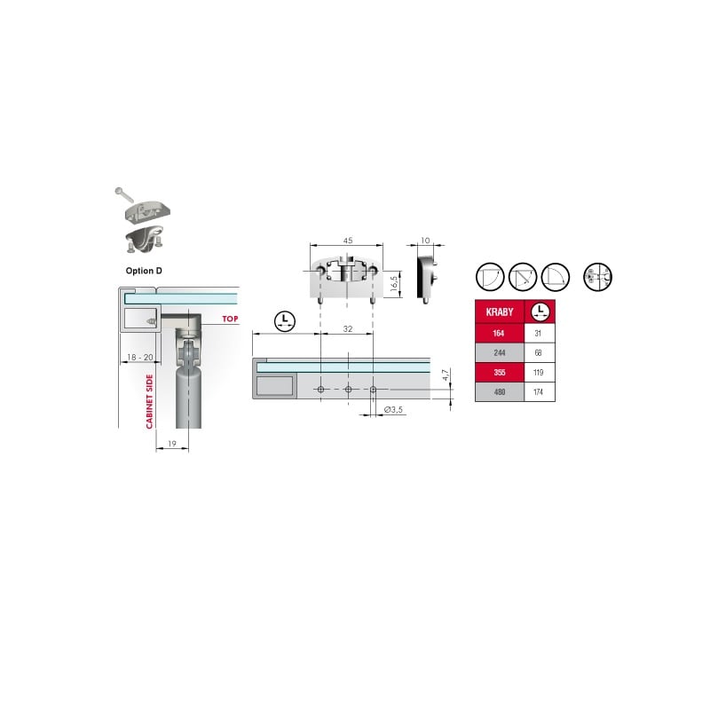 Bracket adapter for narrow aluminum profile doors (nickel plated) for OPENING SYSTEM “KRABY”