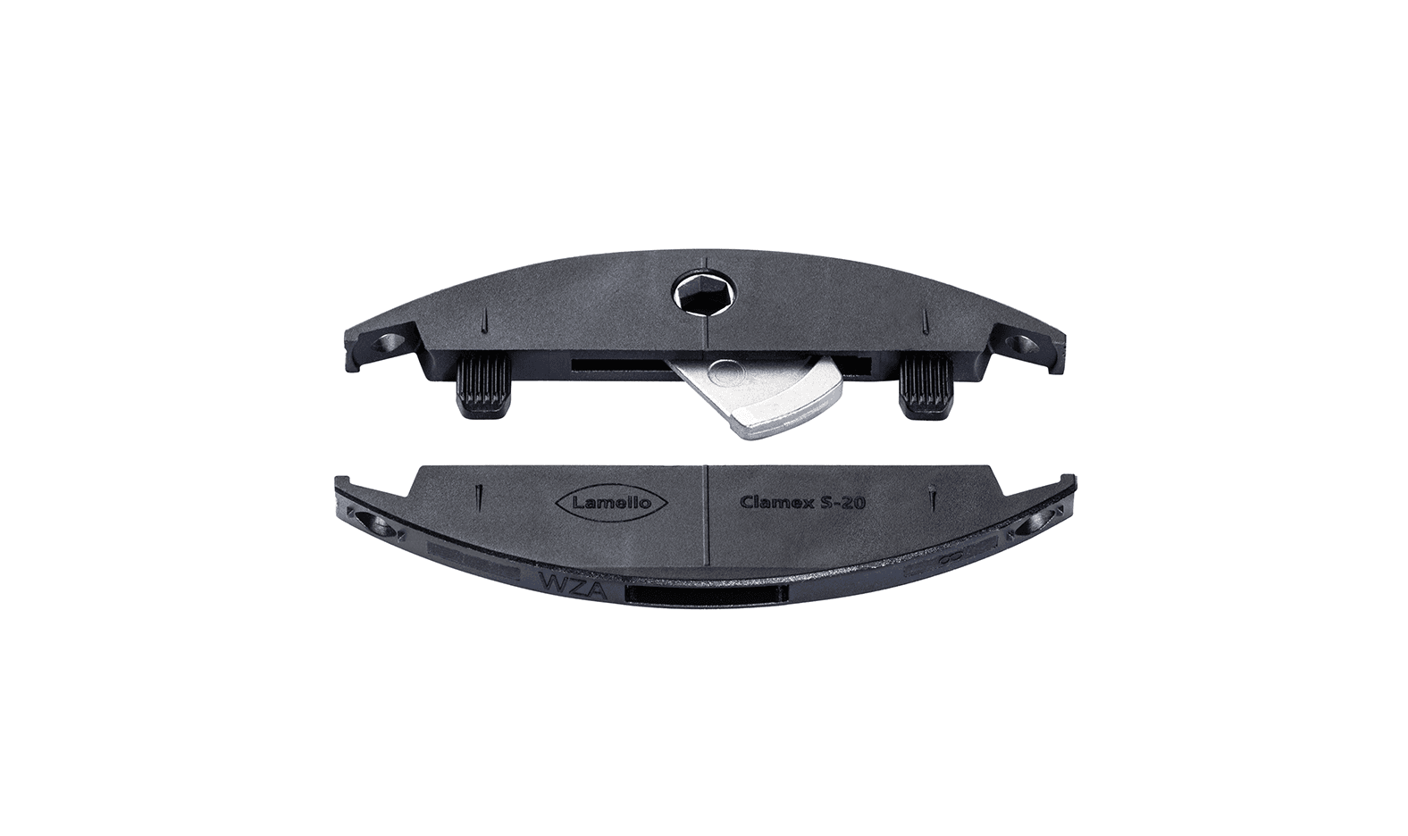 Clamex S-20 is a detachable connector for the Lamello system for material thicknesses from 16 mm and is fastened in the groove with screws. The symmetric 4 mm grooves can be created with any biscuit joiner. Clamex S-20 is connected to the counterpart with a lever and has a lateral installation tolerance. It requires no adhesive, enables aesthetic connections at all angles and is ideal for fixed or detachable connections.