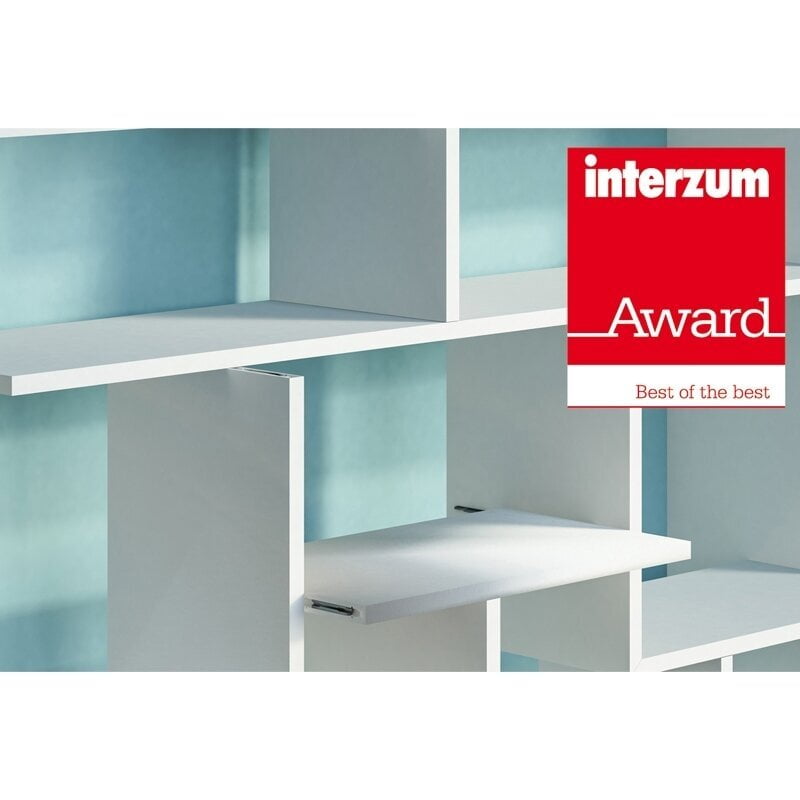 Divario P-18 is a detachable connector for slide-in insertion and is anchored in the form-locking P-System groove within seconds. The connector is used to slide shelves or partitions into an already assembed cabinet. In the process, the Divario P-18 clamps the workpieces together firmly and ensures perfectly closed joints without visible connectors. Divario P-18 is used for joining shelves to divisions from 18 mm panel thickness or in butt joints from 12 mm.