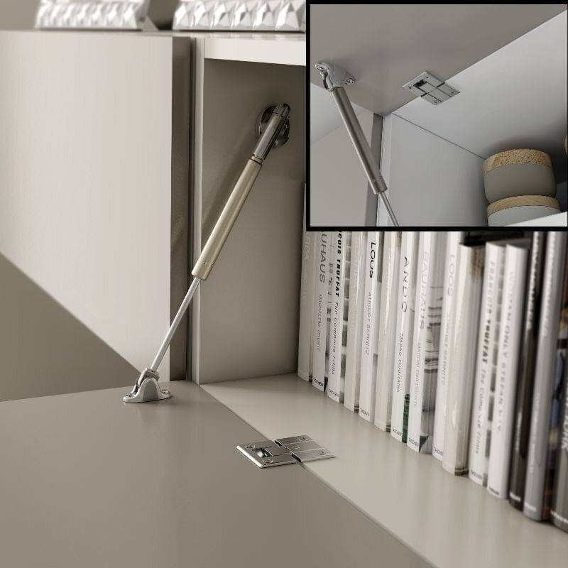 - Provided with a unique and exclusive movement, this hinge allows to open cabinet doors in column.