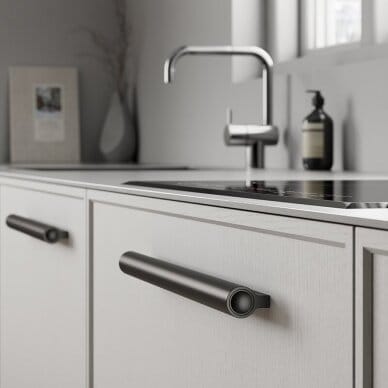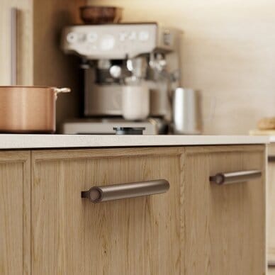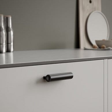 Designed with simplicity in mind, this handle features the cleanest possible round profile, seamlessly extending to connect with the cabinet door. A small spherical depression at the edge of the profile serves as a refined detail, marking the beginning and end of the design, while inviting interaction. With its easy grip and straightforward aluminum extrusion, Lucente is a versatile handle, ideal for everything from chests of drawers to full-height cabinet doors.
