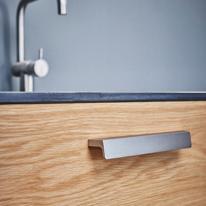 Furnipart’s Envelope draws its inspiration from the principle of a classic envelope, where the folds in the paper create the iconic lines. The model is distinguished by a clear, readily comprehensible profile that shapes the handle’s effective grip plate. With its angled surfaces, the handle presents a slim and elegant invitation to the user. A strong and functional handle that adds a distinctive expression to the furniture.