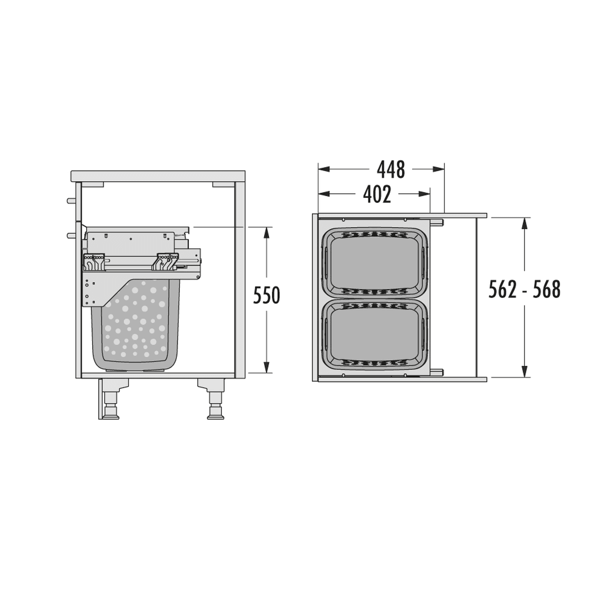 Hailo Laundry-Carrier S 600, for 600 mm wide base-cabinets