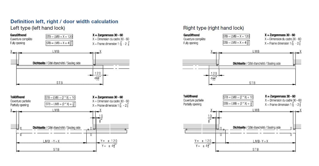• Door width: 750–1250 mm (2′ 5 17/32” to 4′ 1 7/32”)