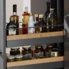 Innovative design solution: the oak inserts ordered separately from us or any other 6 mm thick inserts can be placed on the sides of the shelves, so you can personalize your kitchen design.
