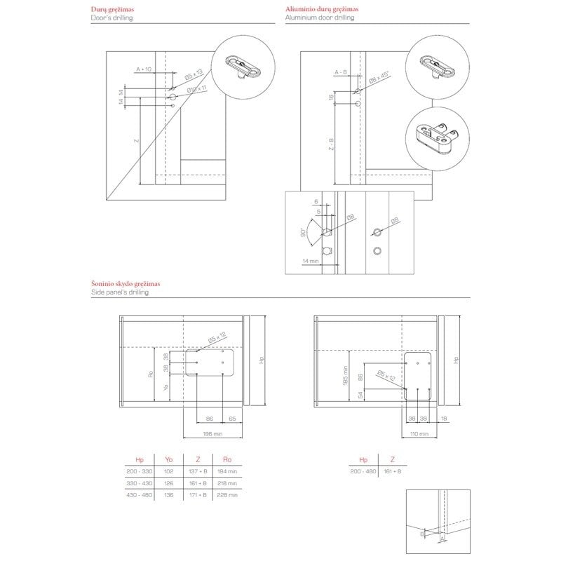- Fixation by drilling the cabinet side, fastening on door by screw.