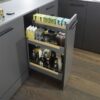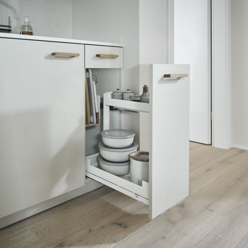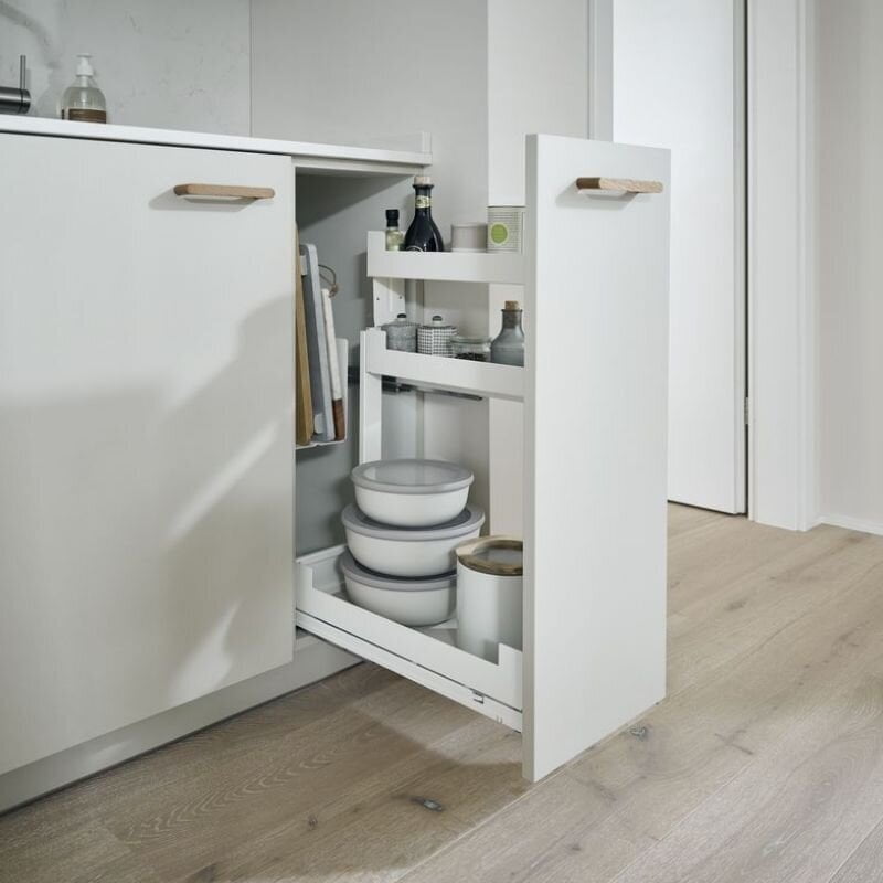 - Wide range of additional accessories, allows to adjust the shelves to everyone’s needs: additional shelf – for high cabinets, holder for bottles – recommended for use on the bottom shelf when no wooden inserts are used, magnetic separators.