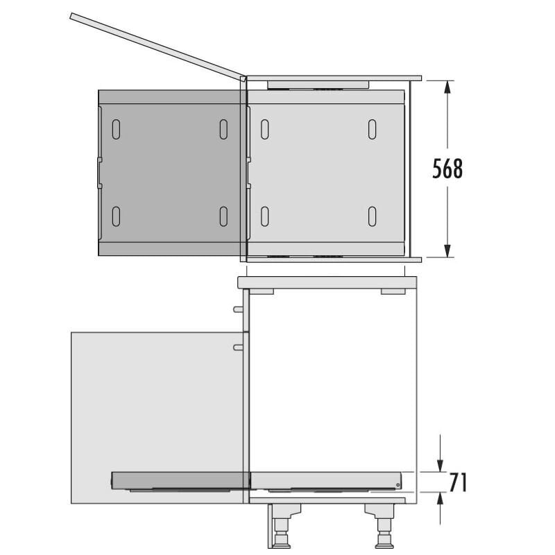 - By the direct mounting of the rails on the sidewall of the cabinet, the universal pullout is highly resilient