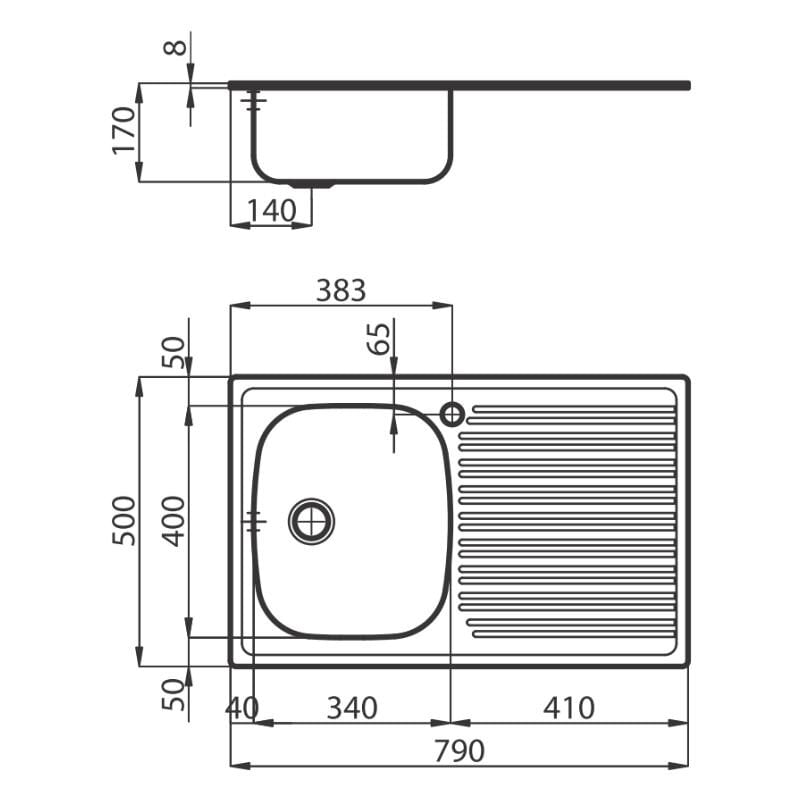 - Stainless steel Sink.