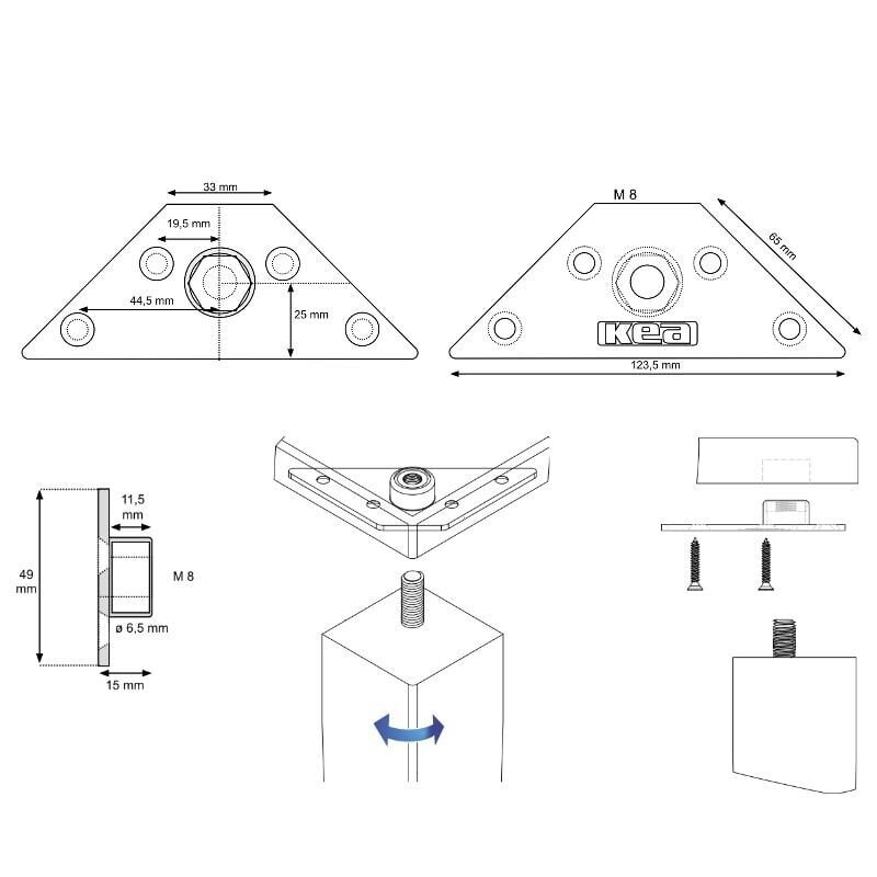 - Dimensions: 123,5x49x15 mm, M8.